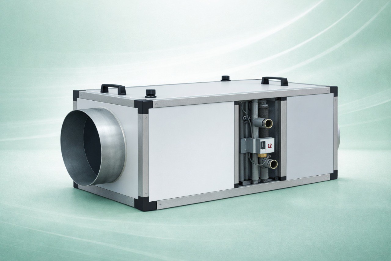 Одной из ключевых особенностей данной модели является ее высокая производительность — расход воздуха составляет 1200 м³/час. Это позволяет быстро обновлять воздух в помещениях, создавая комфортные условия для проживания и работы. Применение водяного калорифера обеспечивает надежный и стабильный обогрев поступающего воздуха, что особенно актуально в холодное время года. Мощность установки достигает 23 KW, что позволяет ей эффективно функционировать даже в условиях низких температур.